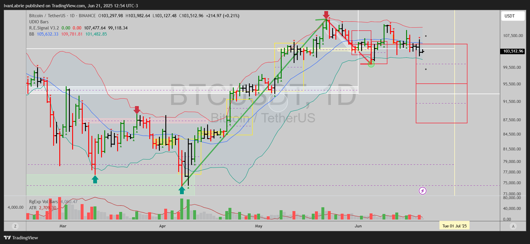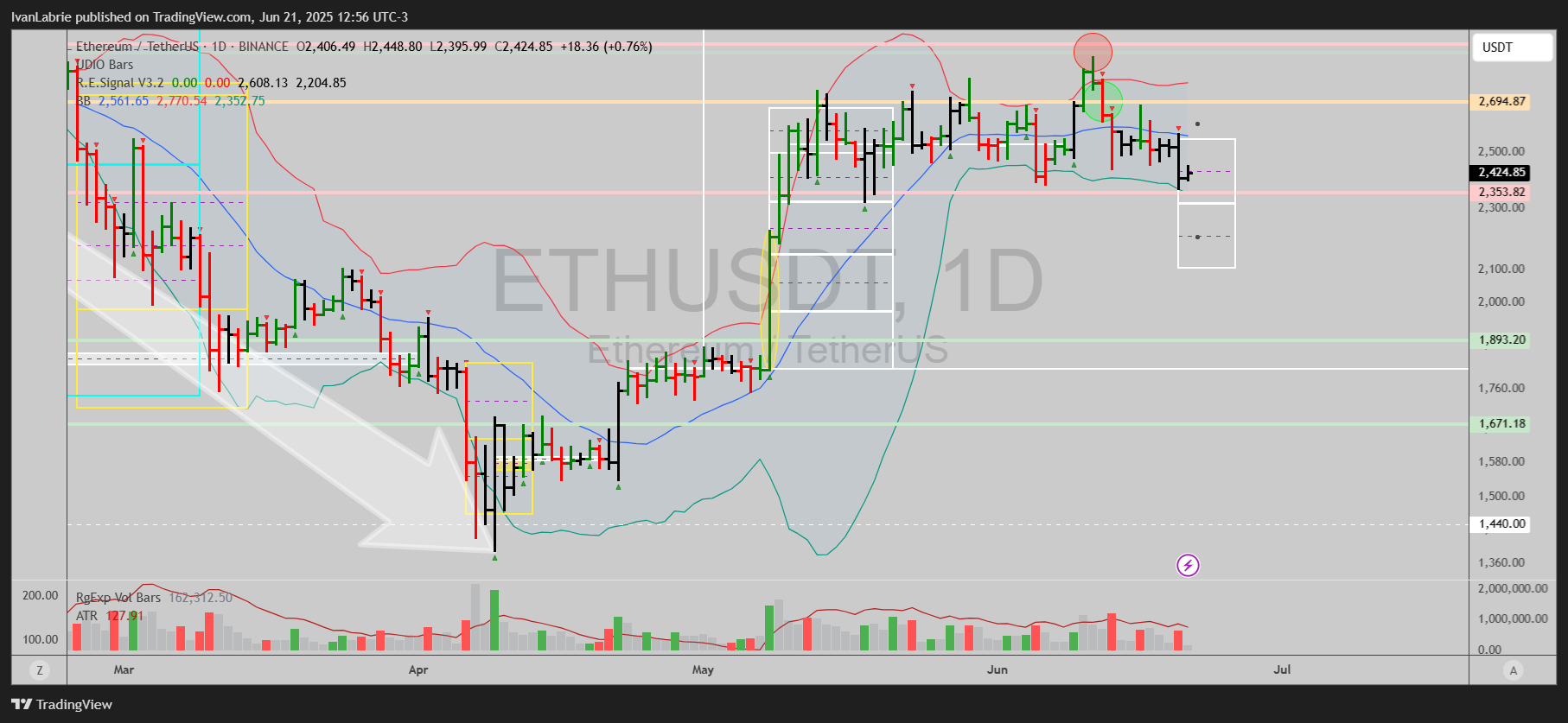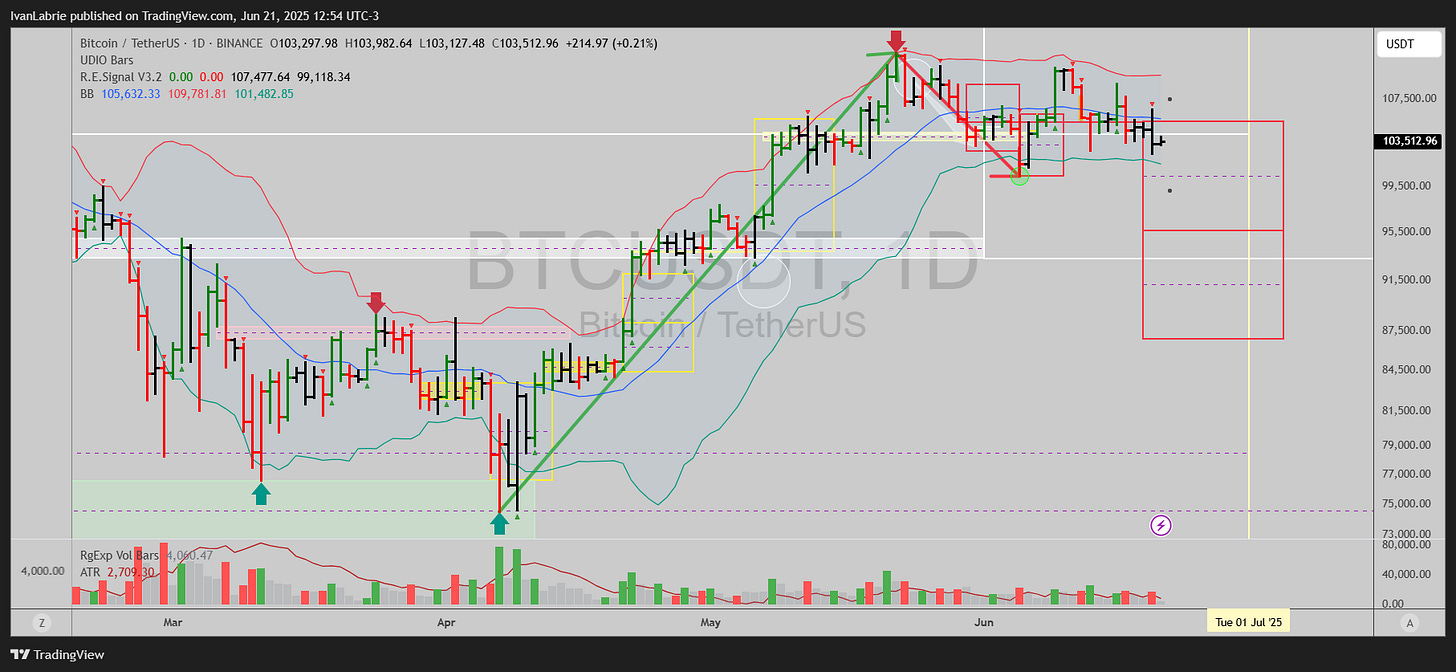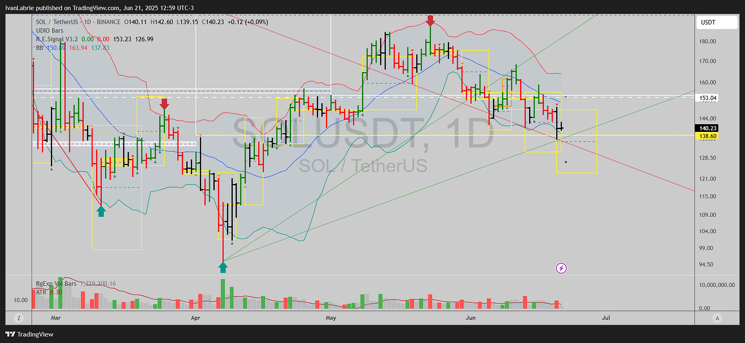 SOLUSDT turned bearish on May 30th, same as BTCUSDT, but recently price had bottomed on June 5th, and it was possible to base and trend up from here, but that possibility was negated yesterday.