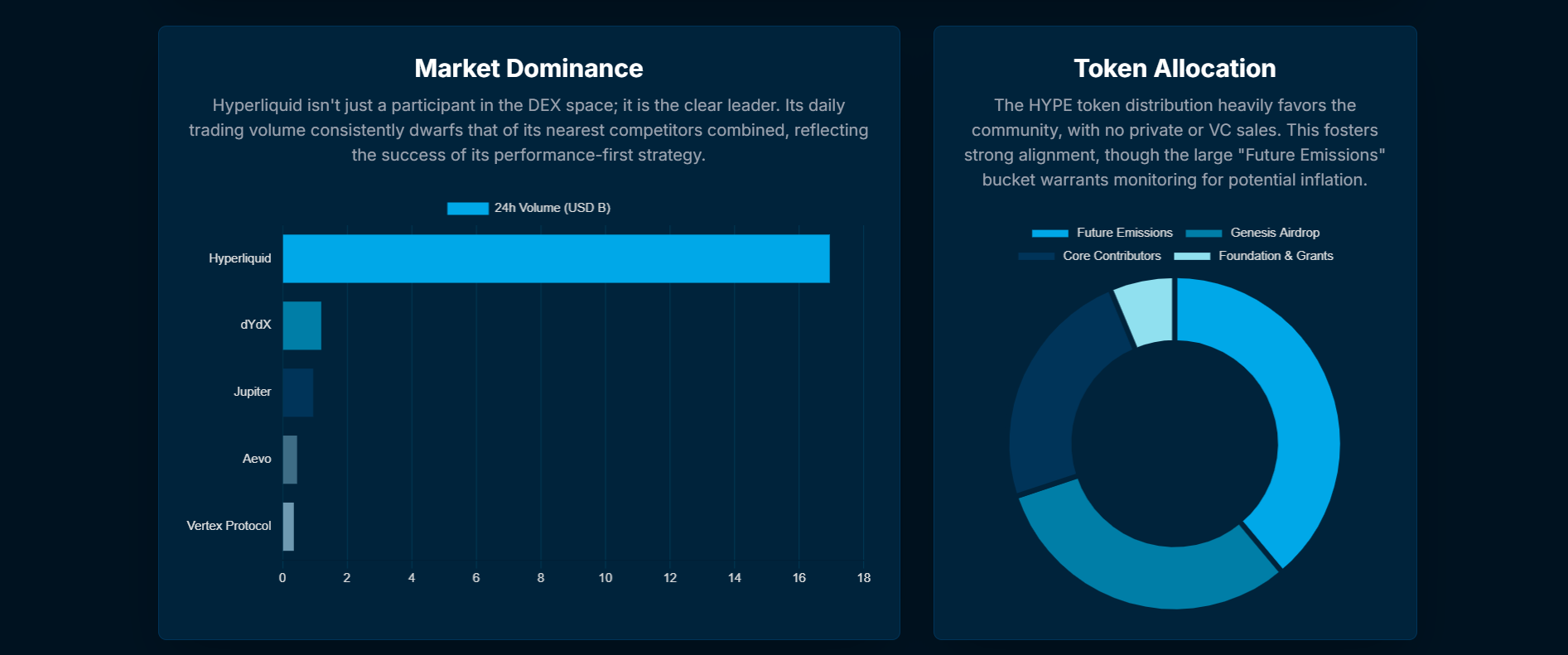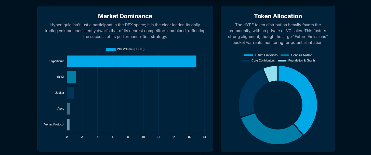 It’s the top perp dex, no one is nowhere near close, that is very clear and will likely remain this way for the foreseeable future, outside of some black swan event, like some failure of their custom L1 or vulnerability in the Unit protocol which allows native trading of other network tokens like BTC, ETH, SOL, FARTCOIN and PUMP, to name a few. Hopefully this won’t happen, but you never know.